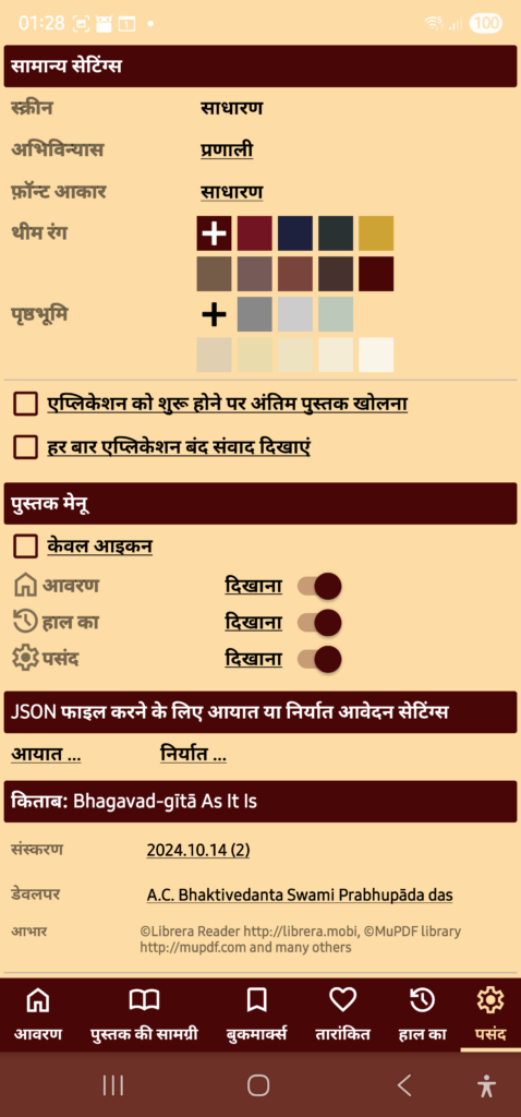 This is electronic version of the book “Bhagavad-gītā As It Is” in 18 languages with diacritics, listening to shlokas in Sanskrit and standard functions: